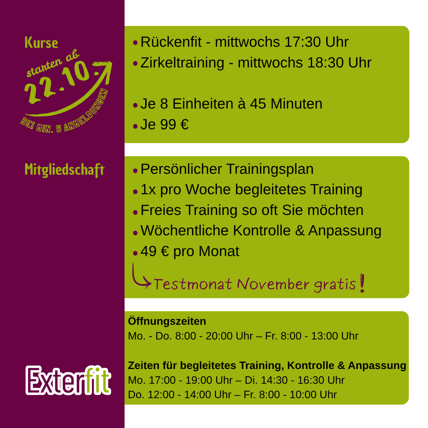 Kurse für Rückenfit und Zirkeltraining – starten ab dem 22. Oktober